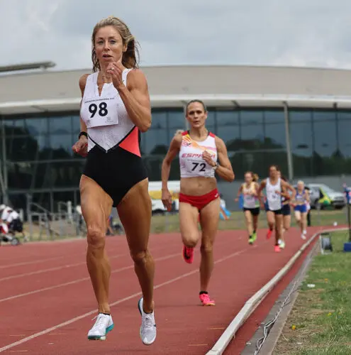 World W45 champion Zoe Doyle, who also ran 200m and 400m at this meeting, won the 800m easily in 2:19.23. Other stadium records were set in the same race by W50 and reigning European champion Nikki Sturzaker (2:31.79), W60 Clare Elms (2:31.94) and W55 Kate Ramsey (2:38.69).