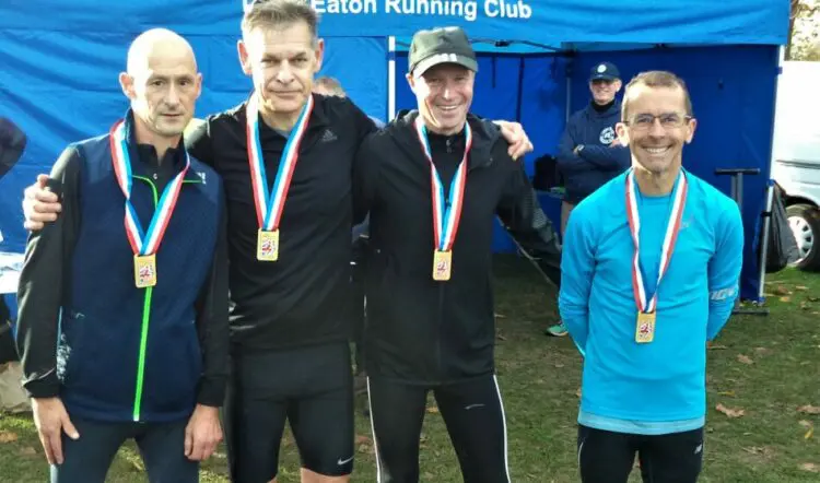 Running over just four stages and therefore finishing before their younger brothers, the M55’s efforts were largely obscured but Leicester Coritanian retained their title.