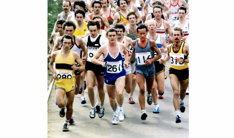 He immediately settled into the leading group though an early picture taken of the leading group up front shows three runners who are still heavily involved in the sport – the cross-country organiser Graham Finlayson, Barry 40 organiser Mick McGeoch and Jog Shop owner Sam Lambourne.