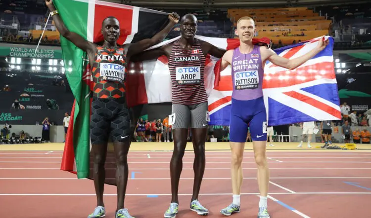 800 (26th): 1 Marco Arop CAN 1:44.24; 2 Emmanuel Wanyonyi KEN 1:44.53; 3 Ben Pattison GBR 1:44.83; 4 Adrián Ben ESP 1:44.91; 5 Slimane Moula ALG 1:44.95; 6 Tshepiso Masalela BOT 1:45.57; 7 Bryce Hoppel USA 1:46.02; Djamel Sedjati ALG DQ. SF1 (24th): 1 Slimane Moula ALG 1:43.93; 2 Tshepiso Masalela BOT 1:44.14; 3 Ben Pattison GBR 1:44.23; 4 Mateusz Borkowski POL 1:44.30; 5 Mohamed Attaoui ESP 1:44.35; 6 Benjamin Robert FRA 1:44.38; 7 Abdellatif El Guesse MAR 1:44.55; 8 Joseph Deng AUS 1:48.12. SF2 (24th): 1 Marco Arop CAN 1:44.02; 2 Djamel Sedjati ALG 1:44.49; 3 Saul Ordóñez ESP 1:44.74; 4 Catalin Tecuceanu ITA 1:44.79; 5 Gabriel Tual FRA 1:44.83; 6 Filip Ostrowski POL 1:45.30; 7 Daniel Rowden GBR 1:45.38; 8 Alex Kipngetich KEN 1:45.56. Heat 3 (24th): 1 Emmanuel Wanyonyi KEN 1:43.83; 2 Adrián Ben ESP 1:43.92; 3 Bryce Hoppel USA 1:44.04; 4 Yanis Meziane FRA 1:44.30; 5 Simone Barontini ITA 1:44.34; 6 Andreas Kramer SWE 1:44.57; 7 Mark English IRL 1:45.14; 8 Max Burgin GBR 1:47.60. Heat 1 (22nd): 1 Emmanuel Wanyonyi KEN 1:44.92; 2 Gabriel Tual FRA 1:45.10; 3 Catalin Tecuceanu ITA 1:45.31; 4 Tshepiso Masalela BOT 1:45.60; 5 Ryan Sanchez PUR 1:48.24; 6 Mohamed Ali Gouaned ALG 1:49.16; 7 Krishan Kumar IND 1:50.36; 8 Hein Htet Aung MYA 1:53.63; 9 Manuel Belo Amaral Ataide TLS 1:58.32. Heat 2 (22nd): 1 Mateusz Borkowski POL 1:45.40; 2 Max Burgin GBR 1:45.43; 3 Joseph Deng AUS 1:45.48; 4 Mark English IRL 1:45.71; 5 Brad Mathas NZL 1:45.95; 6 Dániel Huller 1:47.41; 7 Tom Dradiga UGA 1:48.60; Navasky Anderson JAM DQ. Heat 3 (22nd): 1 Alex Kipngetich KEN 1:47.63; 2 Djamel Sedjati ALG 1:47.87; 3 Saul Ordóñez ESP 1:47.97; 4 Isaiah Harris USA 1:48.00; 5 John Fitzsimons IRL 1:48.20; 6 Ibrahim Renoud Al-Zafairi KUW 1:48.41; 7 John Rivera PUR 1:48.83; 8 Amel Tuka BIH 1:49.01; 9 Allan Ngitsi Chirwa MAW 1:51.62. Heat 4 (22nd): 1 Adrián Ben ESP 1:45.37; 2 Bryce Hoppel USA 1:45.56; 3 Daniel Rowden GBR 1:45.67; 4 Filip Ostrowski POL 1:45.76; 5 Abdullahi Hassan CAN 1:46.33; 6 Ferguson Rotich KEN 1:46.53; 7 Marino Bloudek CRO 1:46.63; 8 Ole Jakob Høsteland Solbu NOR 1:51.66. Heat 5 (22nd): 1 Benjamin Robert FRA 1:46.45; 2 Ben Pattison GBR 1:46.57; 3 Mohamed Attaoui ESP 1:46.65; 4 Emmanuel Korir KEN 1:46.78; 5 Abdessalem Ayouni TUN 1:46.85; 6 Clayton Murphy USA 1:47.06; 7 Abedin Mujezinovic BIH 1:47.76; 8 Riley McGown AUS 1:48.38; 9 Faustino Prieto Alfaro MLT 2:04.20. Heat 6 (22nd): 1 Abdellatif El Guesse MAR 1:45.24; 2 Andreas Kramer SWE 1:45.42; 3 Slimane Moula ALG 1:45.76; 4 Francesco Pernici ITA 1:45.89; 5 Peter Bol AUS 1:46.75; 6 James Preston NZL 1:46.84; 7 Handal Roban VIN 1:46.86; 8 Alex Beddoes COK 1:48.31; 9 Justice Dreischor ARU 1:59.56. Heat 7 (22nd): 1 Marco Arop CAN 1:45.05; 2 Simone Barontini ITA 1:45.21; 3 Yanis Meziane FRA 1:45.30; 4 Joonas Rinne FIN 1:45.93; 5 Balázs Vindics 1:47.18; 6 Eduardo Moreira BRA 1:47.75; 7 Nabil Oussama MAR 1:47.79; 8 Abdullah Al-Yaari YEM 1:47.98 NR; 9 Mohammed Dwedar PLE 1:55.45