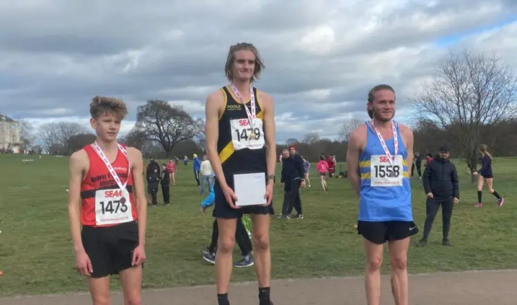Ninth in Liverpool, he ran a strong second lap (over the same course as the senior women) and he took the title by 12 seconds from Tonbridge’s James Kingston, who had only been 17th at Liverpool but impressed by finishing second in the Kent senior championships earlier in the month.