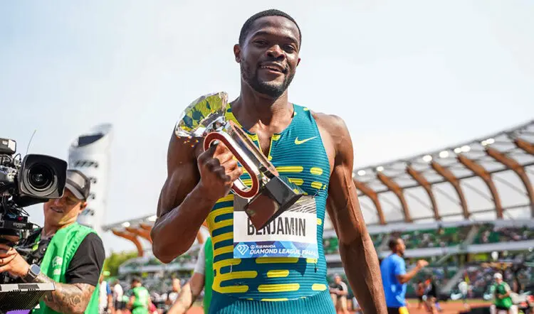 Out-sprinting Warholm in the home straight, Benjamin clocked a Diamond League record and world leading mark of 46.39 as Warholm finished runner-up in 46.53 with McMaster third in 47.31.