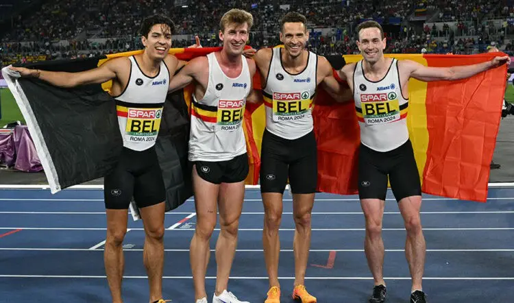 The Belgian quartet took bronze in 3:22.95 ahead of the Italian national record 3:23.40.