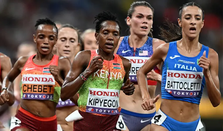 Battocletti had moved to the front as the bell sounded, by which time Kipyegon had arrived on the scene to sit on her shoulder, with Chebet and Ethiopia’s Gudaf Tsegay in close attendance.