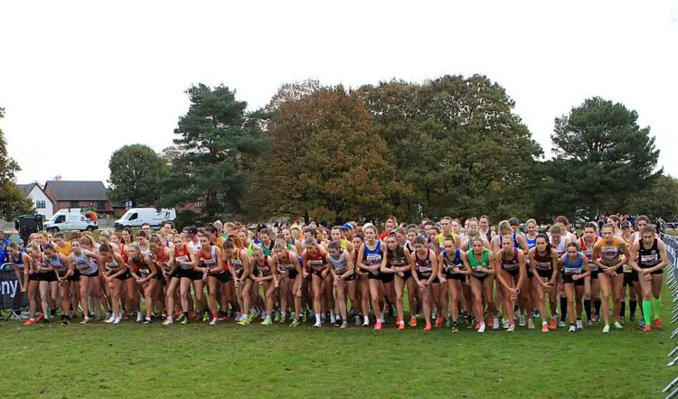 Women (3x3km): 1 Belgrave 29:40 (N Donegan 10:12, S Astin 9:53, K Axford 9:36); 2 AFD 30:38 (M Jordan-Lee 10:12, K Estlea-Morris 10:34, N Brown 9:53); 3 AFD B 30:53 (P Roessler 10:20, A Griffiths 9:49, K Brown 10:44); 4 Cambridge & Coleridge 30:56 (L Shanahan 10:29, K Lowery 10:34, B Wood 9:54); 5 Loughborough Students 31:02 (C Dannatt 10:24, E Muzio 10:31, E Parker 10:08); 6 Blackheath & B31:07 (C Sharp 10:20, M Squibb 10:55, N Bridson-Hubbard 9:53); 7 Belgrave B 31:22 (I Wolsey 10:17, K Popadich 10:45, S Hicks 10:21); 8 Sale 31:23 (L Armitage 10:20, J Spilsbury 10:54, M Davies 10:10); 9 Herne Hill 31:31 (L Jones 10:00, H Keenan 11:11, S Tooley 10:21); 10 Reading 31:54 (L Church 10:03, N Harris 10:48, E Howsham 11:04); 11 Leeds 32:02 (D Corradi 10:40, E Curran 10:49, S Stockton 10:34); 12 Thames Valley 32:13 (C Buckley 10:07, N Edmunds 11:19, L Sterritt 10:48); 13 Loughborough B 32:21 (A Coffey 10:46, C Young 10:45, J Norkett 10:51); 14 Thames Hare & Hounds 32:36 (E Weir 10:38, B Murray 11:13, C Hammett 10:45); 15 Belgrave C 33:08 (M Corden-Lloyd 10:53, S Hewitt 11:04, M Canham 11:12); 16 Mansfield 33:14 (L Coleman 10:35, H Gill 11:33, N Yates 11:07); 17 WSEH 33:17 (A Barbour 10:13, N Thompson 11:12, K Clutterbuck 11:53); 18 Charnwood 33:24 (K Parker 11:13, Juliet Potter 10:56, A Seager 11:15); 19 Peterborough & Nene Valley 33:30 (G Holloway 11:03, H Knight 11:26, M Peel 11:03); 20 Salford 33:37; 21 Herts Phoenix 33:42; 22 Loughborough 33:57; 23 Norwich 34:01; 24 Trafford 34;14; 25 Rotherham 34:25; 26 Steel City 34:18; 27 Hallamshire 34:25; 28 York 34:30; 29 Tonbridge 34;35; 30 Blackburn 34:35