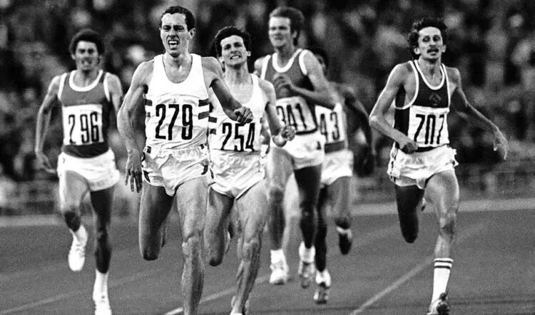 Coe went ahead with 500 metres to go but held back initially as he went through three-quarters of a mile in 2:51.9 which was down on Ovett’s time as he still had Boit close behind him. He was through 1500m in 3:32.93 and then impressively changed pace in the finishing straight to take a whole second off Ovett’s mark.
