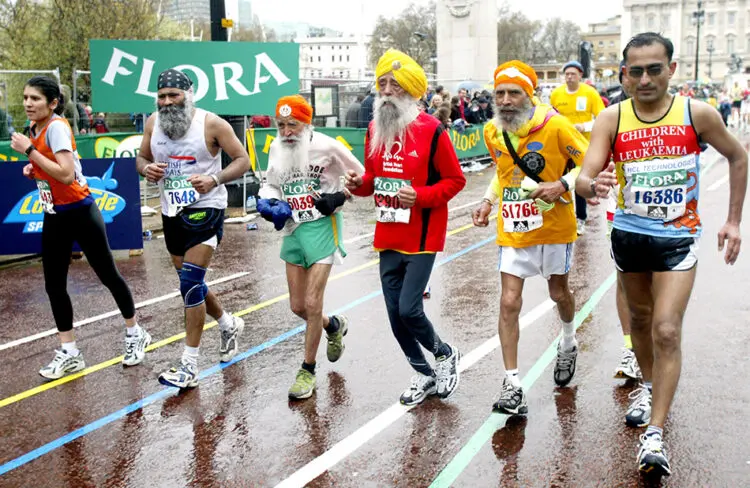 Singh took up running in 2000 aged 89 shortly after moving from India to Britain and went on to run 6:02:43 in the 2003 London Marathon in the M90 age group before improving to 5:40:04 a few months later that year in Toronto. Later, in 2011, he claimed to be the first centenarian to run a marathon with 8:11:06 in Toronto.