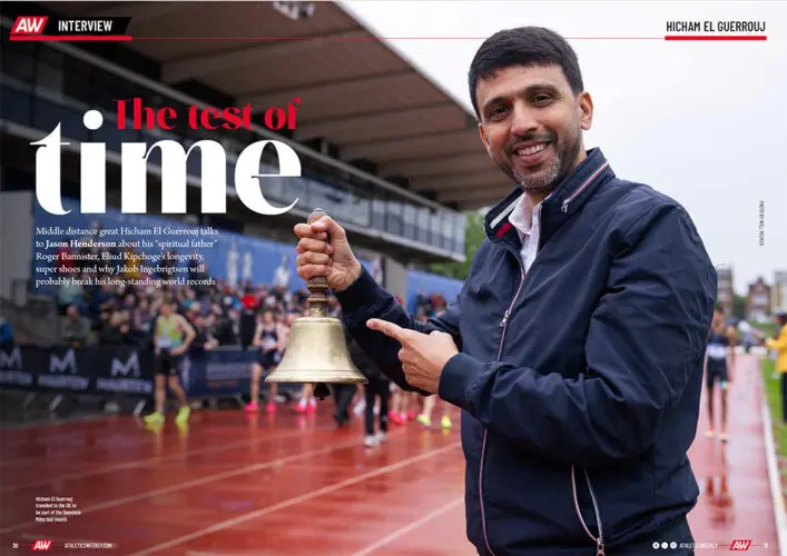 On May 6 El Guerrouj was in Oxford for the Bannister Miles event to celebrate the 70th anniversary of Roger Bannister’s first sub-four-minute mile. He surprised onlookers by stretching his legs in the community mile, clocking 6:49 a few seconds ahead of Steve Cram as the two supermilers rolled back the years.