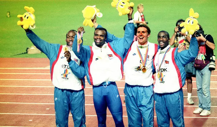The winning time of 2:57.43 was a British, European and Commonwealth record. In second, the Americans clocked 2:57.57 with Jamaica a distant third in 3:00.10.