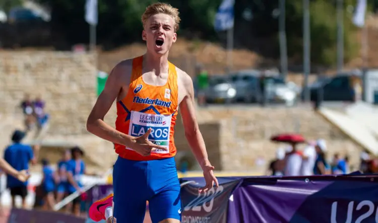 Laros has drawn comparisons with Olympic 1500m champion Jakob Ingebrigtsen as he has already run 3:32.89 for 1500m this year aged 18. In Jerusalem he won the 1500m in a slow 3:56.78 but with an impressive 51.35 last 400m. Later, in the 5000m, he coolly sat off the early pace before making his move in the final stages to clock 14:11.82 as he comfortably beat a runner, Grahn, who had out-kicked Ireland's Nick Griggs to win the 3000m earlier in the week.