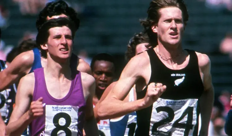 Seb Coe (8) and New Zealand's John Walker (24) race during the 1977 800m at Crystal Palace.