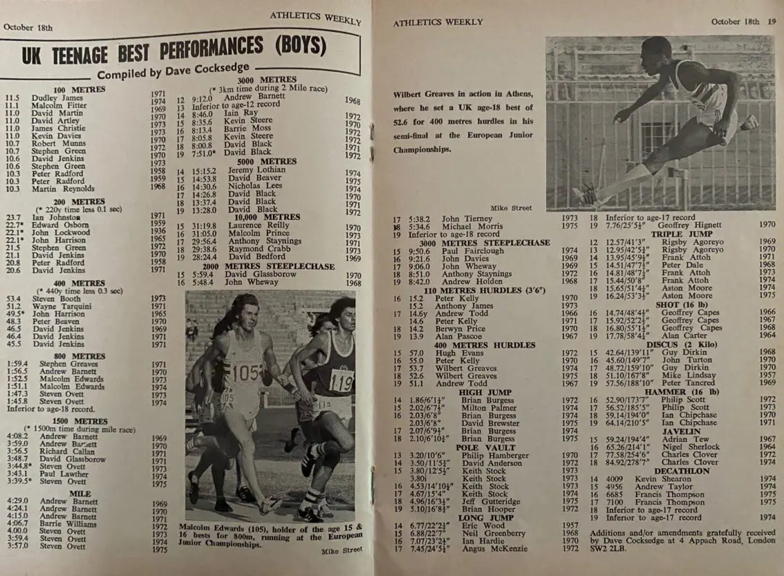 The most interesting pages for most might well be the UK teenage age best performances all-time on centre pages 18-19.