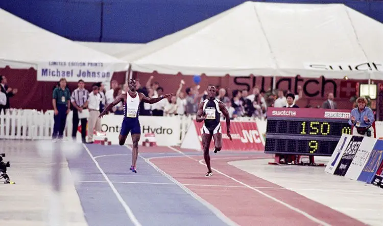 Following those 1996 Games the idea of organising a showdown over a neutral distance of 150m had gathered pace and the event eventually was staged on Bailey's home soil at the Skydome in Toronto with each athlete guaranteed $500,000 just for taking part and then a further $1m going to the winner.