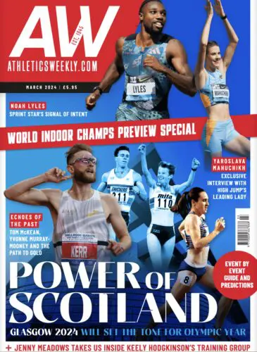The March issue of AW had a distinct feel compared to the first two covers of the year, as it showcased a group of athletes, with a particular focus on the Scottish competitors preparing to compete on home soil at the World Indoor Championships in Glasgow.