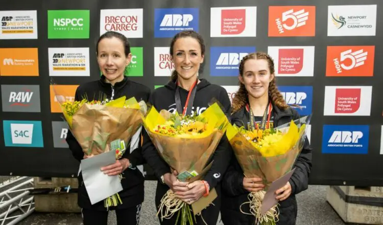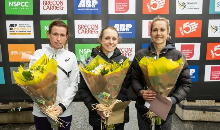 The women’s 10km saw a battle between Wales’ two fastest marathoners Clara Evans of Pontypridd Roadents and Natasha Cockram of Micky Morris Racing Team. Cockram came out on top, taking the title and breaking the course record in a time of 33:27, ahead of Evans in 33:35.