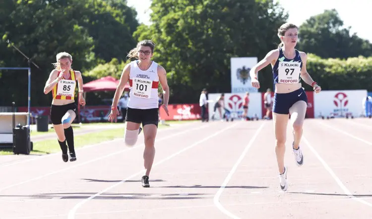 Paralympics champion Sophie Hahn (above, right) was also in fine form and a few days after victory at the televised grand prix in Gateshead she won at Bedford with 13.02.