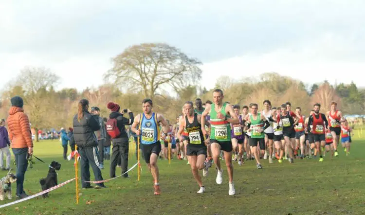 Iris Downes of Shrewsbury led the girls up the first of three significant hills but local favourite Eliza Nicholson, effectively running as a guest, did not wait long to stamp her authority on the race and she won comfortably. Summer Smith is only under-13 but the Essex champion paced her effort well here to move past Downes into second and face an anxious wait for her teammates. Sandringham School actually closed their quartet before Coopers’, whose fourth scorer just arrived in time to clinch the win by two points.