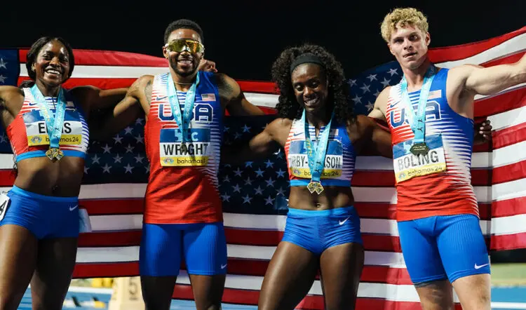 Following the first day of action, the United States set an event record of 41.85 in the women’s 4x100m and also the mixed 4x400m with 3:10.73.