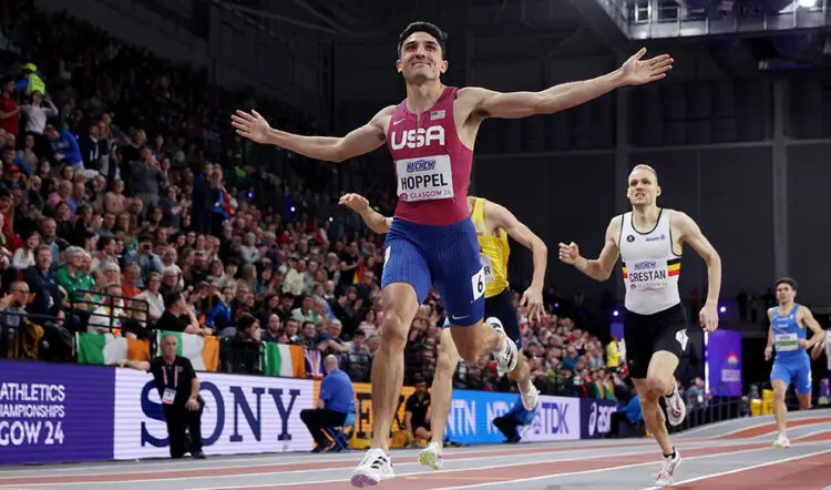 It was USA’s Bryce Hoppel who delivered the knockout blow as he set a world lead by winning in 1:44.92 ahead of Swede Andreas Kramer (1:45.27) and Belgium’s Elliot Crestan (1:45.32).