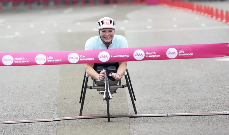 Sammy Kinghorn won the women's wheelchair race in 24:45 with Eden Rainbow-Cooper second and Shelly Woods third.