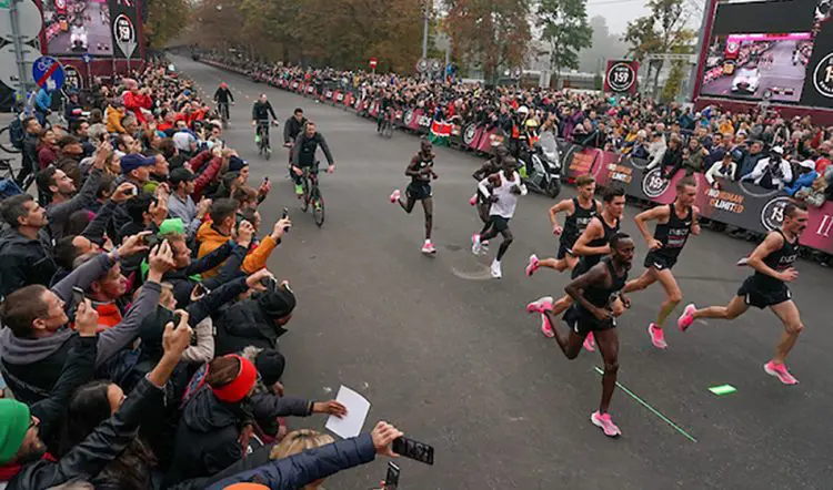 One factor that was missing when Kipchoge ran the Breaking2 event in Monza in 2017 was a crowd to help cheer him. In Vienna it was different, though, with spectators dotted along the course and a large gathering of fans at the finish area that were several rows deep and making lots of noise whenever Kipchoge and his pacing entourage passed.