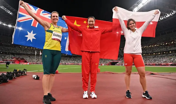 Kelsey-Lee Barber, the Australian who beat Liu to the world title in Doha two years ago, took bronze on this occasion with 64.56m.