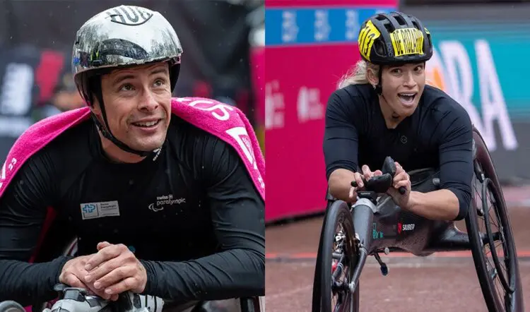 Wheelchair women: 1 M De Rozario (Australia) 1:38:51; 2 M Schar (Switzerland) 1:38:52; 3 C Debrunner (Switzerland) 1:38:54; 4 S Scaroni (United States) 1:38:57; 5 W Tsuchida (Japan) 1:47:40; 6 A Rocha (Brazil) 1:47:41; 7 E Rainbow-Cooper (Weir Arc) 1:47:43; 8 J Fesemyer (United States) 1:47:43; 9 T Kina (Japan) 1:47:48; 10 M Menje (Germany) 1:51:31