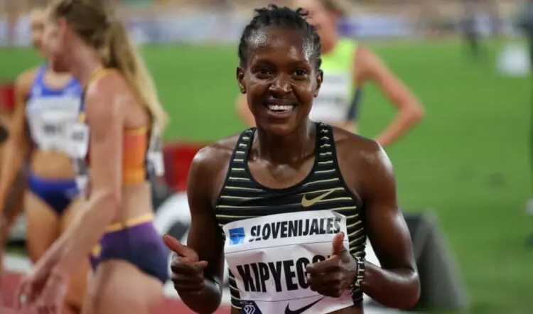 The Monaco track is known for its speedy middle-distance performances and in the women’s 1500m Faith Kipyegon came within three tenths of a second of breaking Genzebe Dibaba’s world record with 3:50.37.