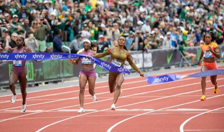 In third and fourth, British duo Dina Asher-Smith and Daryll Neita clocked 10.98 and 11.00 respectively although it wasn’t a good night for multiple Olympic champion Elaine Thompson-Herah as the Jamaican ran 11.30 in ninth.