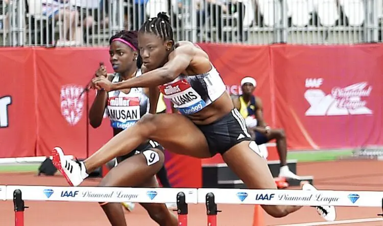 The very first track race of the day saw 2015 world champion Danielle Williams improve her 100m hurdles PB from 12.48 to 12.41 to just miss Janeek Brown’s 12.40 world lead and Jamaican record.