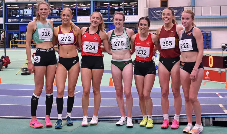 Georgia Bell set a PB 8:49.63 in second while newly crowned European under-20 cross-country champion Innes FitzGerald ran 9:06.26 for an indoor PB which places her third all-time in the UK under-20 indoor lists.