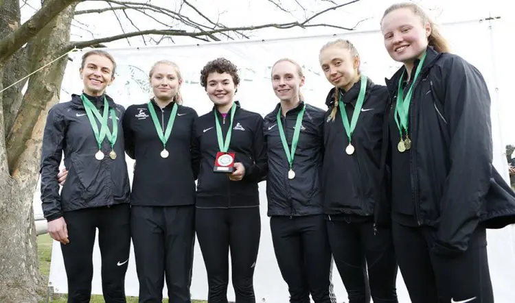 Rotherham’s team of Samantha Hughes, Natasha Hatswell, Sophie Cowper, Jenny Blizard, Lori Hanbury and Devine clocked 1:47:40, with Leeds 29 seconds back and Leigh Harriers third in 1:48:54.