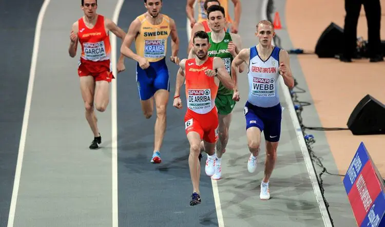 Disqualified after finishing first in the British Championships, Webb ran a superb tactical race but De Arriba was too strong in the closing stages to clock 1:46.83.