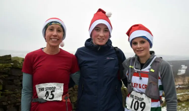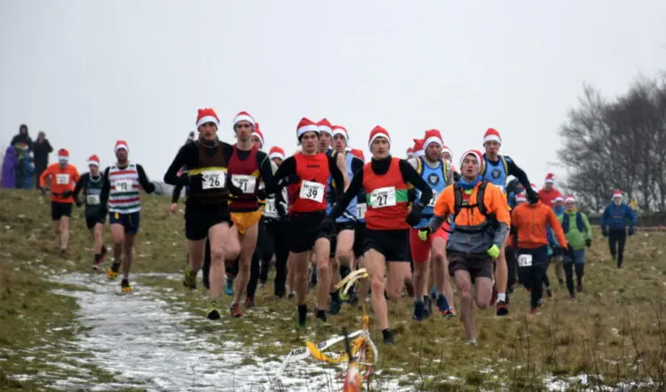 A reasonably sized field participated in this traditional festive fell race with a simple up and down course over five miles near Keighley in very wintry conditions.