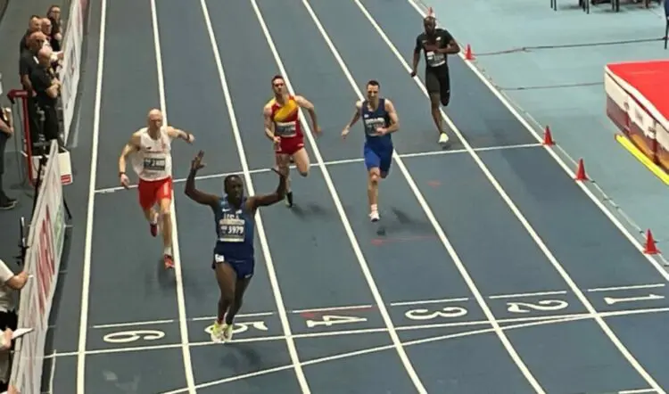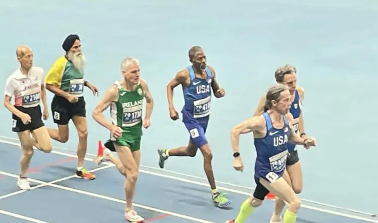 Paul Forbes had won the earlier 800m at a canter at his M65 world record distance. However, he did get beaten over 1500m at the European Indoors in Braga last winter.