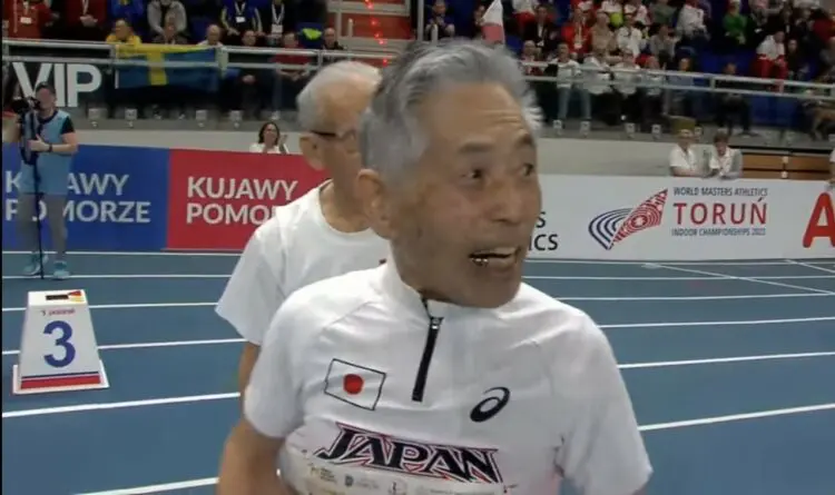 Wright to me was the sprint performance of the weekend but the run that got all the attention was the remarkable 92 year-old Hiroo Tanaka. The Japanese showed incredible leg speed to run a world M90 record of 38.79.