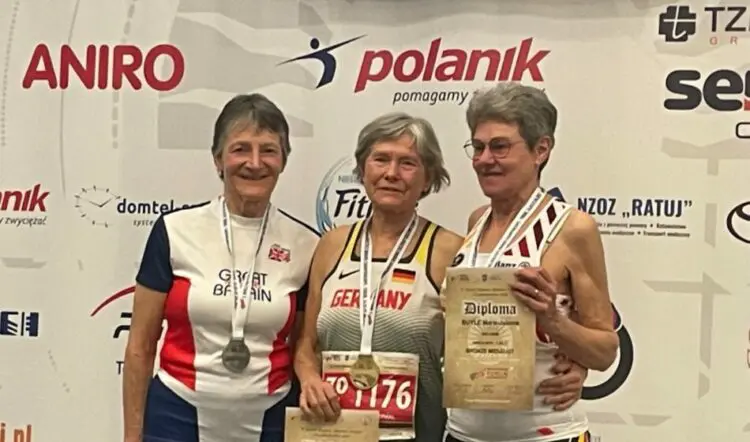 Former multi-world and European champion Ros Tabor, in her first track race for three years years following two replacement hips, took second in the W70 race, while Iris Hornsey – who had also not raced internationally since Torun 2019 – followed up her 800m gold and 400m bronze with a silver to give her a full set here.