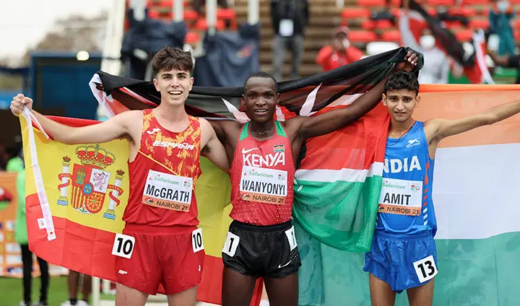 India’s Amit broke clear in the latter laps with Wanyonyi his only challenger but as the Indian moved out to grab water with just over 600 metres remaining, the Kenyan passed and powered away to win in a PB of 42:10.84, with Amit taking silver in 42:17.94 and Spain’s European under-20 champion Paul McGrath winning bronze in 42:26.11.