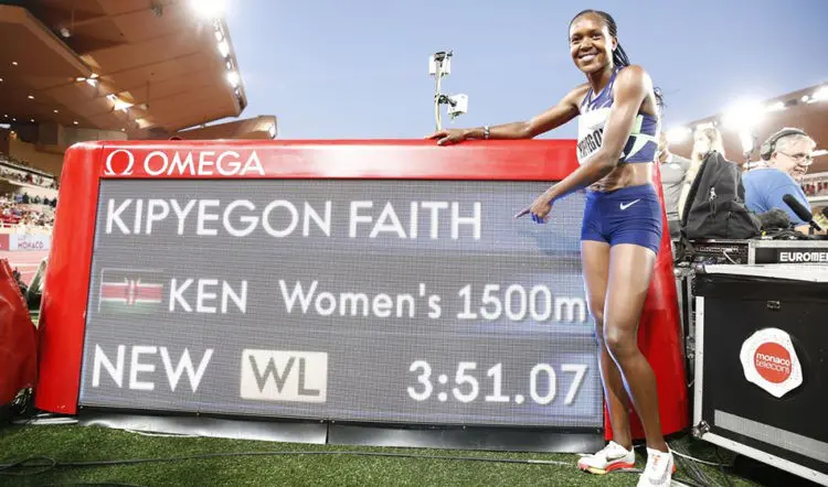 Her time was a world lead, a Kenyan record and the fourth best all-time of 3:51.07. Freweyni Hailu who was with the leading two late into the race finished third in 3:56.28.