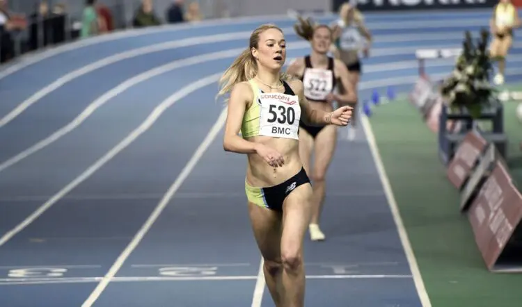 European under-23 800m champion Issy Boffey improved her outright PB to 2:00.99 as she won her race by over seven seconds with an impressive front-running performance which was also a European Indoor Champs qualifying time.