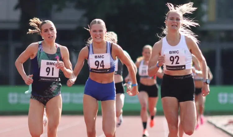 She won the opening GP at Sportcity in a 1500m PB of 4:11.84, was then fifth at Watford and has now carved almost three seconds off her 2022 PB over 800m with her win on Saturday as she nipped ahead of Latvia’s Liga Velvere and UK under-17 No.1 King, who again ran well inside the qualifying marks for the World U20 and European U18 events, in the closing metres as the top three women finished within 14 hundredths of a second of each other.