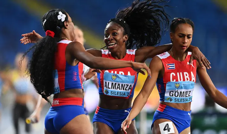The Netherlands also came unstuck in the women’s 4x400m. Halfway through the final leg they were on the shoulder of Britain but faded to fourth as Britain wound up third as Cuba (pictured below) stormed through for victory in 3:28.41 and Poland came through to the runner-up spot.