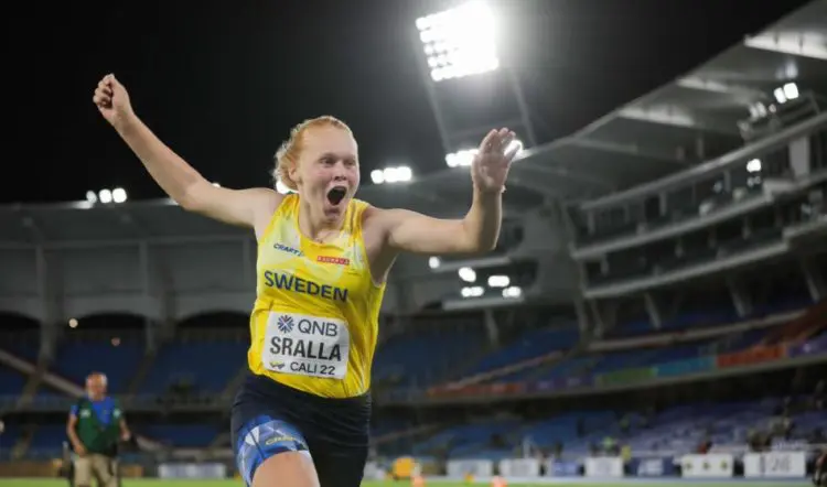 After an initial no throw in the women's discus, Sweden's Emma Sralla took the lead with a 54.94m throw which she improved to 56.15m in the fourth.