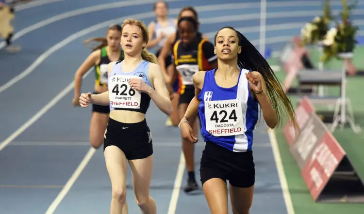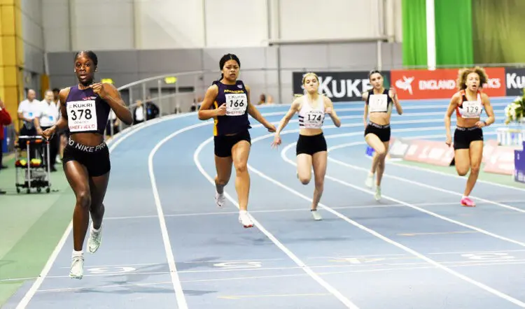 English Schools champion Shiloh Omotosho won the 300m in an indoor PB of 40.24 which moved her to third all-time while Layla Roden took gold over 800m in an indoor PB of 2:14.52.