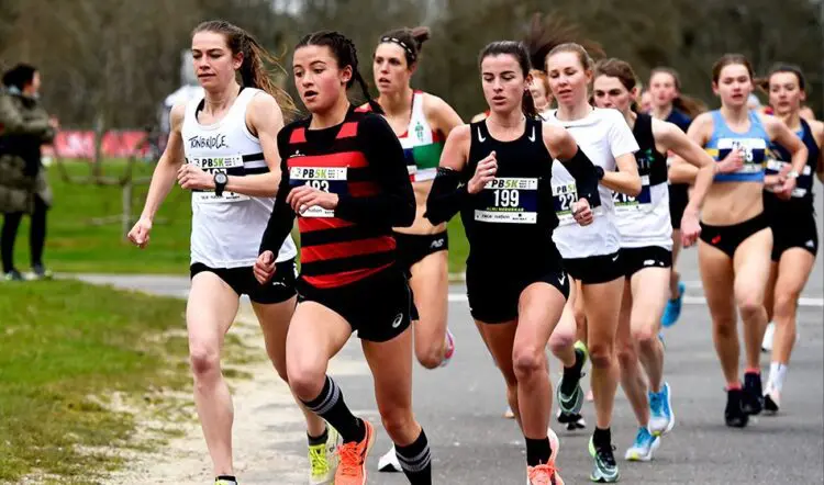 On a cold, windy day in Sussex, double English National junior champion Ellis Cross (above, No.5) won the men's 5km in his first listed race over the distance in 14:05 from Dan Jarvis's 14:07. The leading under-20 Hamish Reilly was third in a big PB of 14:17.