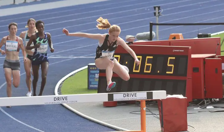 British runners ran well, too, with Aimee Pratt (pictured below) fourth in 9:32.50 and Rosie Clarke just behind with 9:32.95 – just outside their PBs – as Elizabeth Bird also ran 9:55.21.