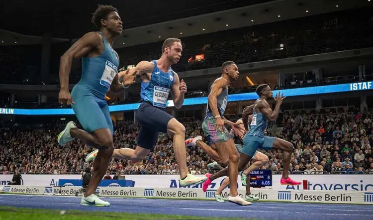 Samuele Ceccarelli pulled off a surprise 60m win over Olympic 100m champion Lamont Marcell Jacobs with 6.54 to 6.55.