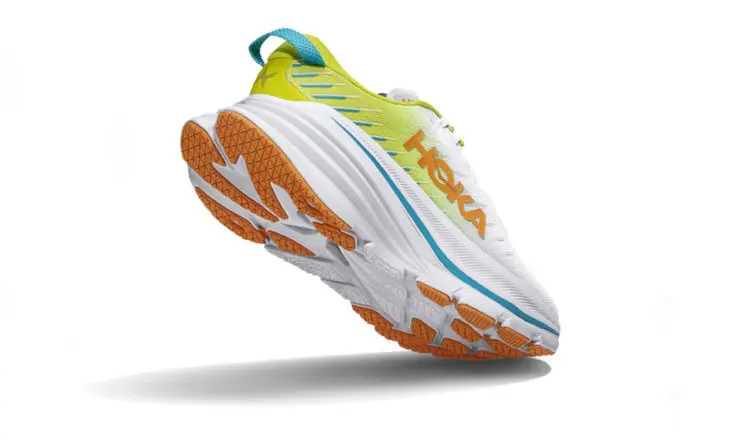 Adding a carbon fibre plate to the original Bondi cushioning and lines to provide a soft, balanced ride for which the popular model is known. The carbon plate aims to provide a more responsive feel and more propulsion on toe-off.