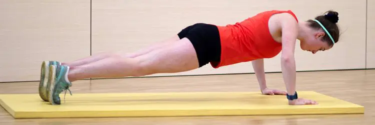 Options: can be advanced by adding a leg raise – hold and alternate legs. Other variants include press-ups performed with narrow or wider hand spacing.