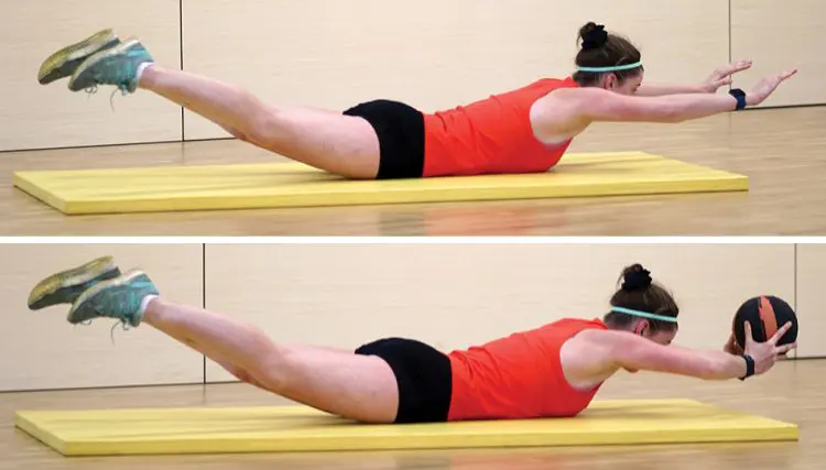 • Lift body upward using posterior muscles, so that arms and legs lift from floor.